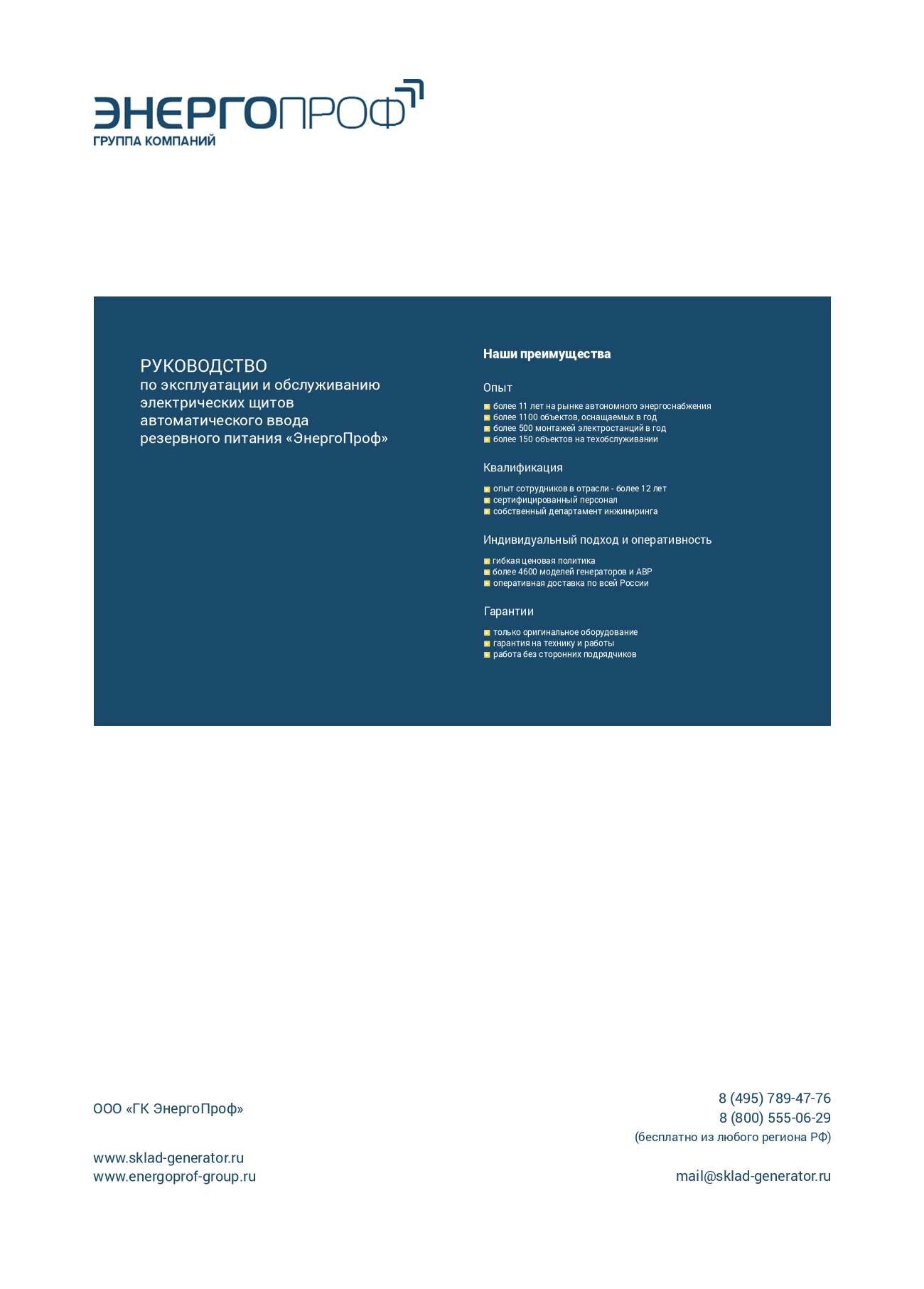 Гарантия бесперебойного энергоснабжения